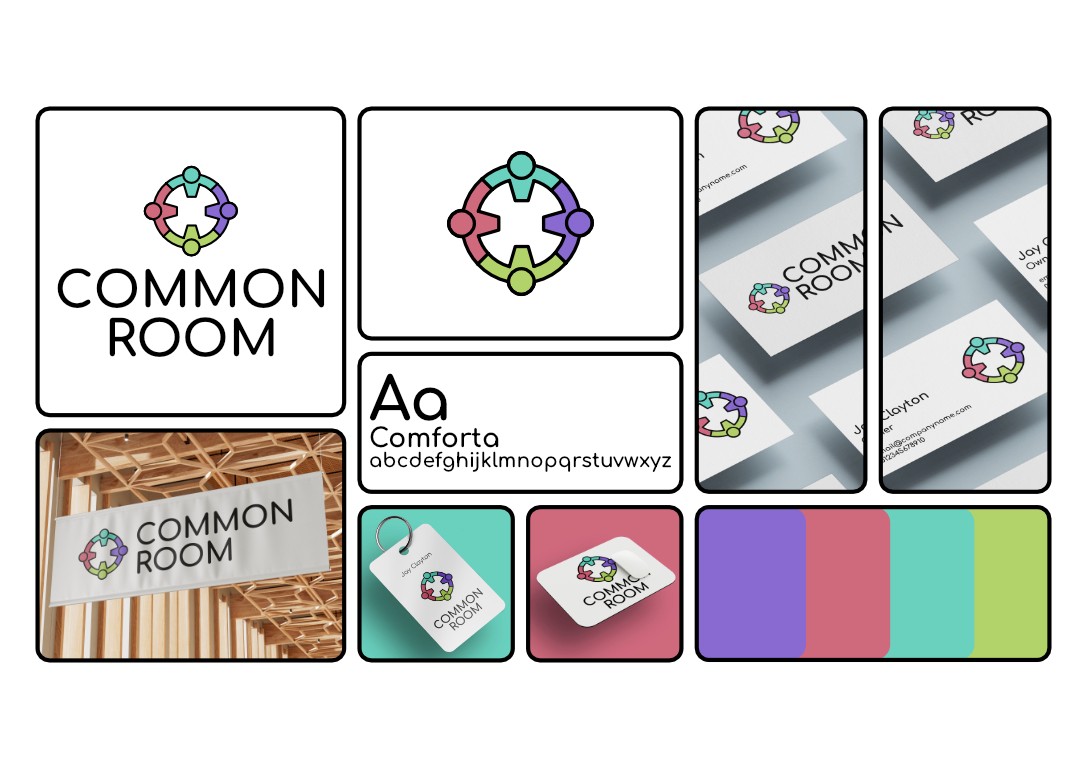 Common Room needed a brand identity that represented collaboration without feeling corporate or impersonal. The goal was to create a visual language that felt inclusive, approachable and modern, while remaining structured enough to work across signage, print and digital environments.