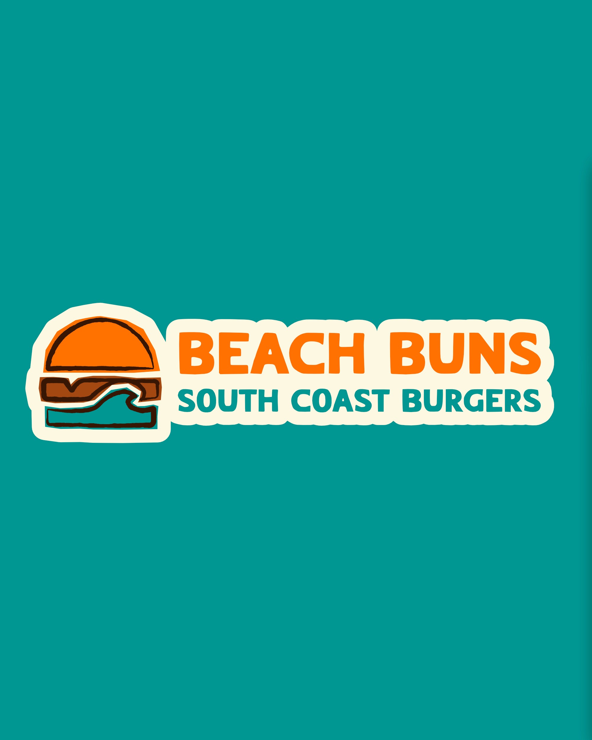 Beach Buns is a coastal burger concept built around sunny beach days, hand-drawn charm and a laid-back California-inspired feel. The brand leans into rough-around-the-edges illustration, warm colours and playful food-focused visuals to create an identity that feels fun, relaxed and full of personality.